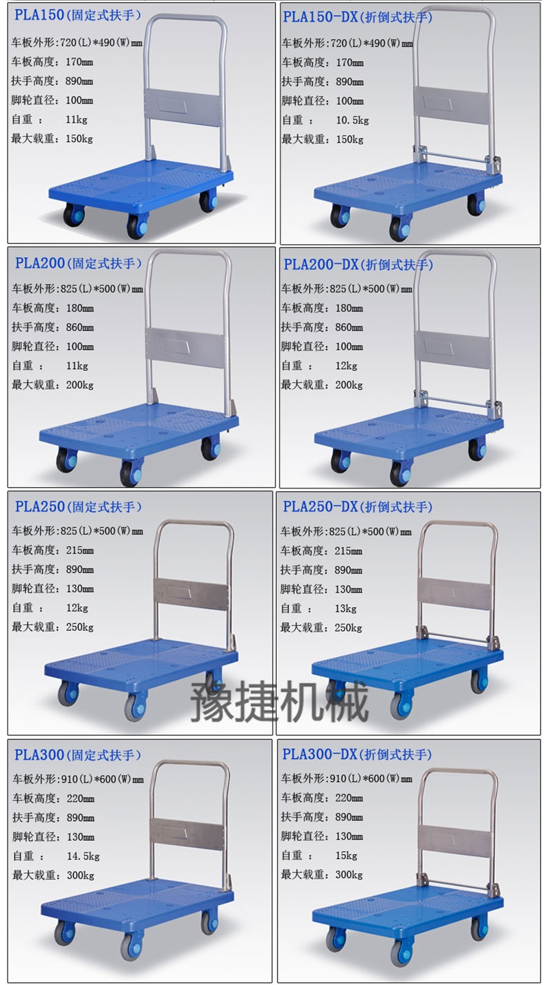 【华体会手机网页版-华体会(中国) 】平板手推车由塑料车板、粉体涂装扶手(可折倒、固定)、静脚轮(尼龙支架、铁板支架)等组成。