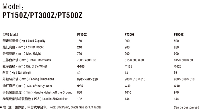 型号 | PT150Z | PT300Z | PT500Z |