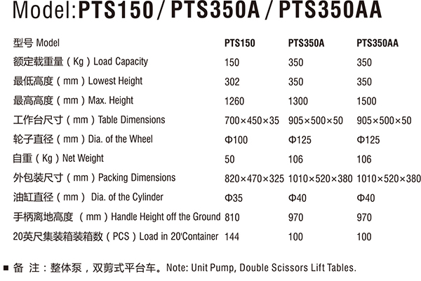 备注:整体泵,双剪式平台车 | |||