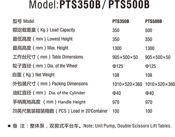 备注:整体泵,双剪式平台车 | ||