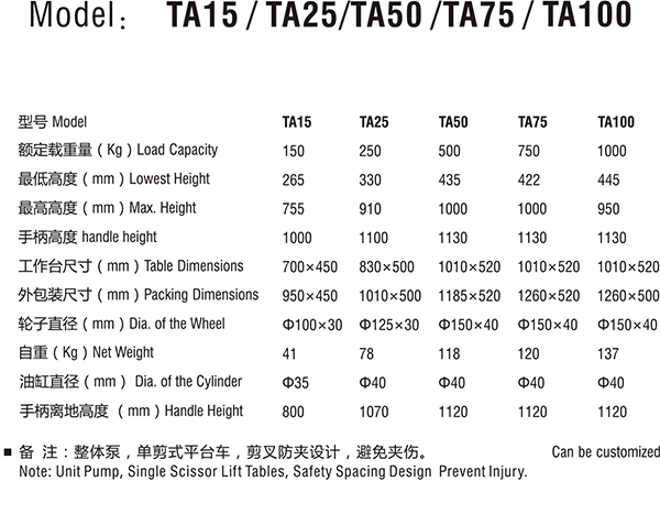 备注:整体泵,单剪式平台车,剪叉防夹设计,避免夹伤 | |||||
