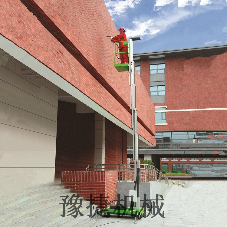 单桅铝合金升降平台:采用优质铝合金材料,具有造型美观、体积小、重量轻、升降平稳、安全可靠等优点。广泛用于工厂、宾馆、餐厅、车站、影剧院、展览馆等场所,是保养机具、油漆装修、调换灯具、电器、清洁保养等用途的理想安全伴侣。