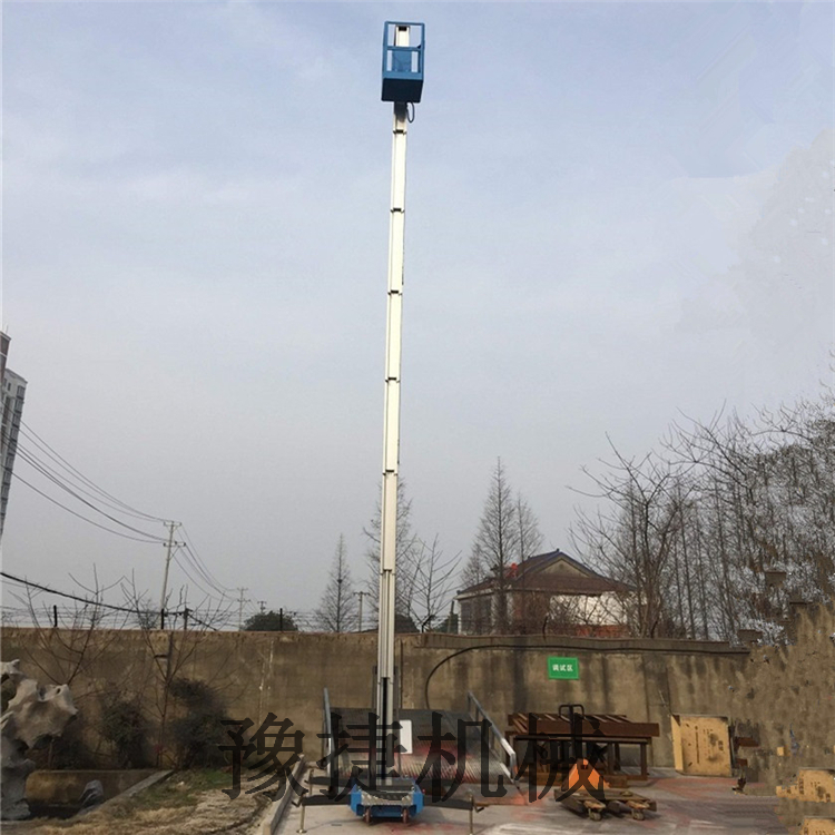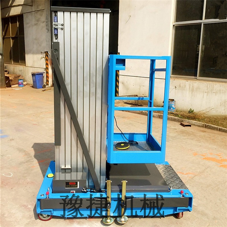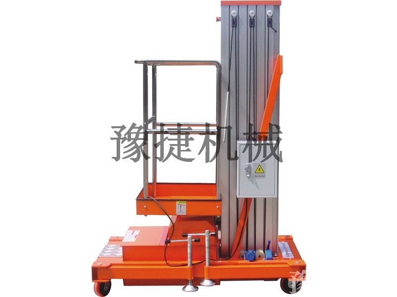 单桅铝合金升降平台:采用优质铝合金材料,具有造型美观、体积小、重量轻、升降平稳、安全可靠等优点。广泛用于工厂、宾馆、餐厅、车站、影剧院、展览馆等场所,是保养机具、油漆装修、调换灯具、电器、清洁保养等用途的理想安全伴侣。