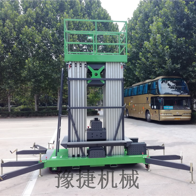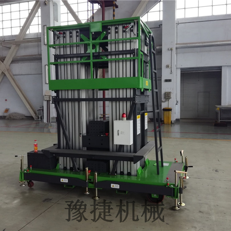 桅铝合金升降平台:采用优质高强度铝合金材料,具有造型美观、体积小、重量轻、升降平稳、安全可靠等优点。广泛用于工厂、宾馆、餐厅、车站、影剧院、展览馆等场所,是保养机具、油漆装修、调换灯具、电器、清洁保养等用途的理想安全伴侣。